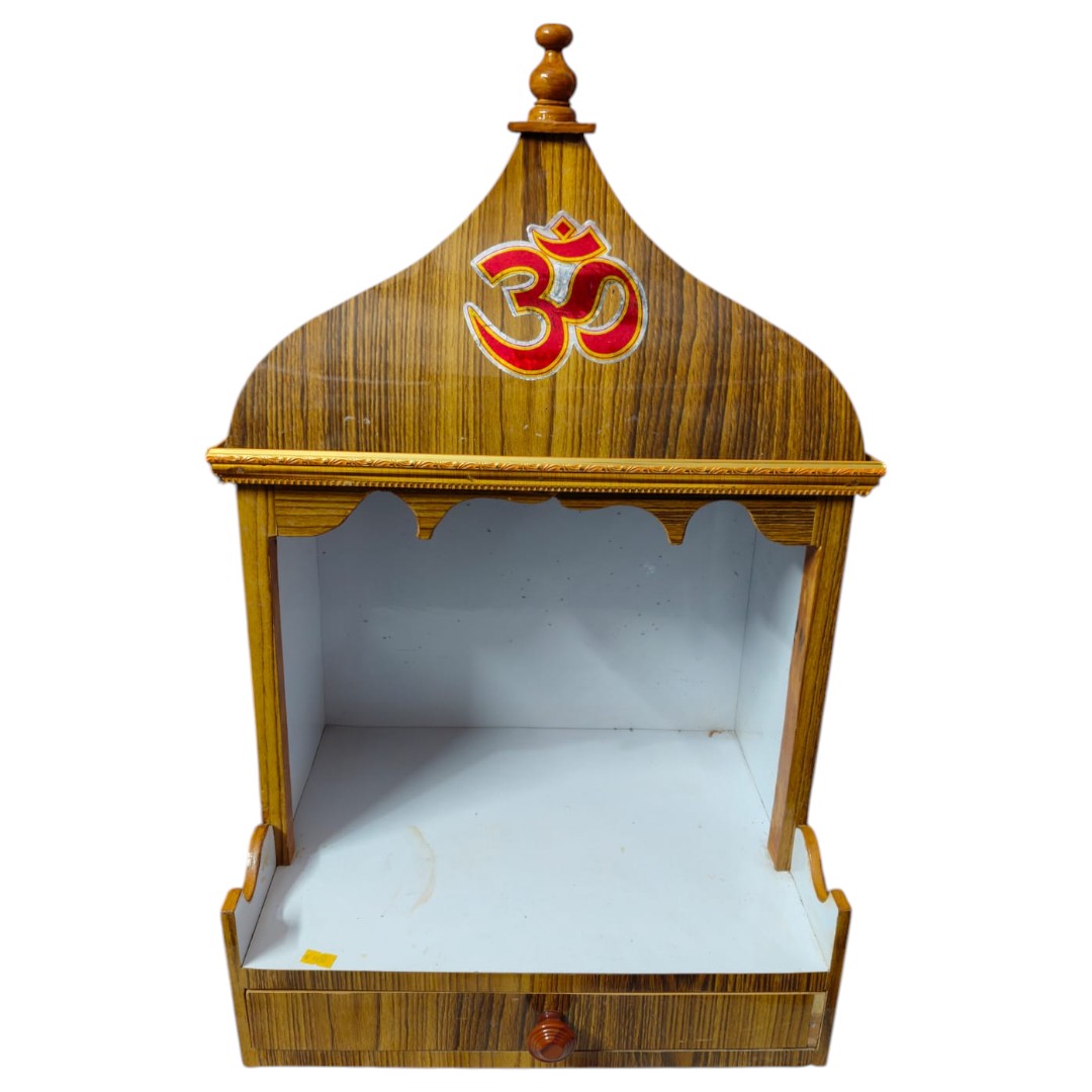 This elegant temple is crafted from high-quality particle board, designed to bring spirituality and style together. Its smooth finish and sturdy build make it a perfect addition for home or office spaces. The temple features a spacious platform for placing idols, along with beautifully carved details that enhance its traditional yet modern look. Lightweight yet durable, this particle board mandir is easy to maintain and adds a serene aura to any room. Ideal for daily puja and meditation, it combines functionality with divine aesthetics.