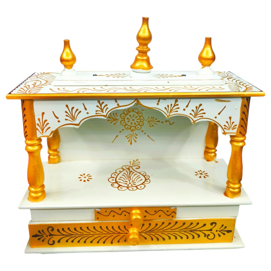 This elegant temple is crafted from high-quality particle board, designed to bring spirituality and style together. Its smooth finish and sturdy build make it a perfect addition for home or office spaces. The temple features a spacious platform for placing idols, along with beautifully carved details that enhance its traditional yet modern look. Lightweight yet durable, this particle board mandir is easy to maintain and adds a serene aura to any room. Ideal for daily puja and meditation, it combines functionality with divine aesthetics.