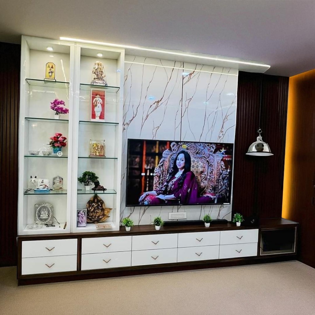 A TV showcase is a modern and functional furniture piece designed to enhance your living room while providing an elegant space for your television. Crafted from premium-quality wood, engineered wood, glass, or metal, it not only holds your TV securely but also offers ample storage for set-top boxes, speakers, books, photo frames, and decorative items.
